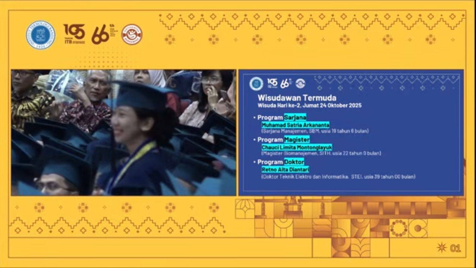 Wisuda Pertama ITB Tahun Akademik 2025/2026 ini menjadi momentum penting untuk menegaskan komitmen melahirkan lulusan doktoral yang tidak hanya unggul secara akademis, tetapi juga memberikan kontribusi nyata bagi pengembangan ilmu pengetahuan dan teknologi di Indonesia.***