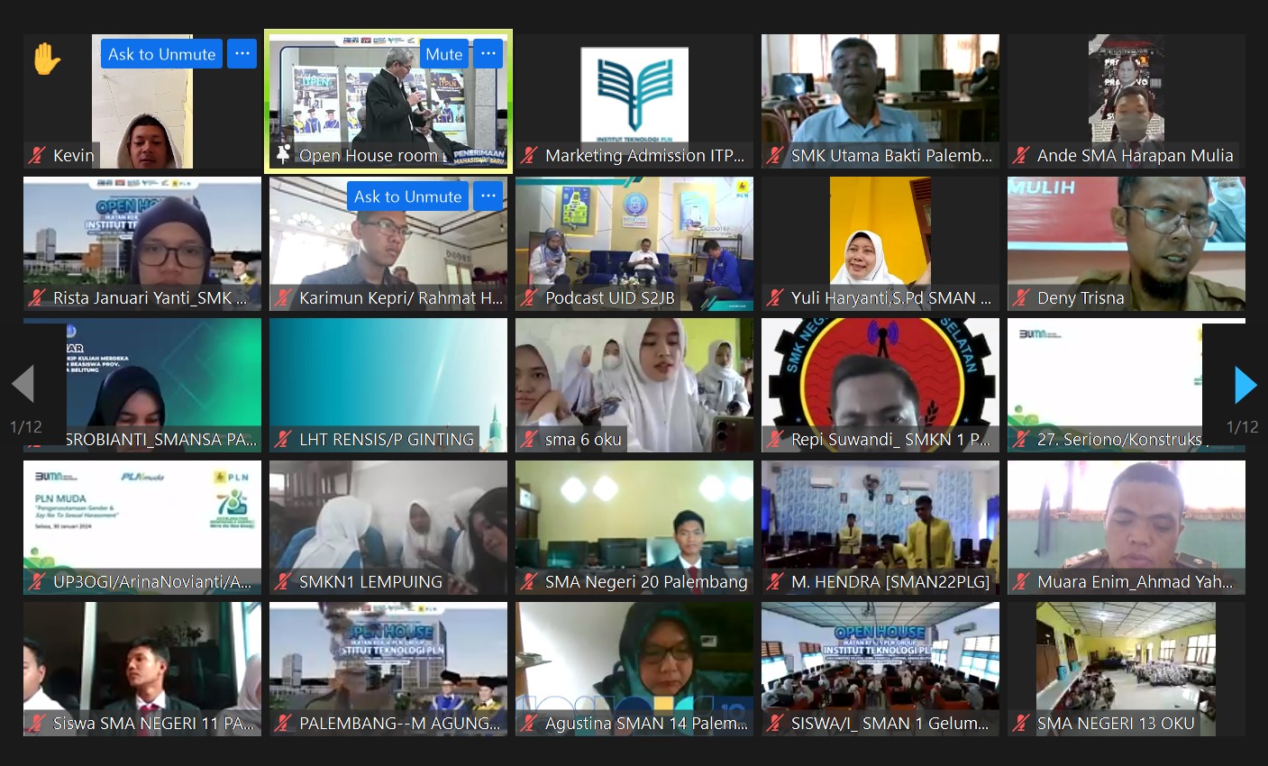 (Jakarta, 26 Februari 2024) – Institut Teknologi PLN (ITPLN) menggelar virtual open house untuk mensosialisasikan program pendaftaran mahasiswa baru (PMB) 2024. Kegiatan dilaksanakan pada Senin 26 Februari 2024 melalui platform zoom dan Youtube dengan peserta sekolah-sekolah di Sumatera Selatan, Jambi, Bengkulu, Lampung dan Bangka Belitung. Acara dihadiri oleh Executive Vice President (EVP) Pengembangan Talenta (TLN) PLN Dedi Budi Utomo, Senior Manager (SRM) Keuangan Komunikasi dan Umum (KKU) PLN Distribusi Sumatera Selatan, Jambi dan Bengkulu (S2JB) Setiadi, jajaran PLN Distribusi Lampung, PLN Wilayah Bangka Belitung, Kepala Dinas Pendidikan Provinsi, Rektor ITPLN Prof. Ir. Iwa Garniwa M.K, M.T beserta Wakil Rektor, Kepala Biro Rektorat, Dekan dan Kelapa Program Studi.